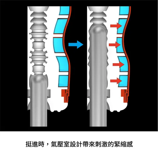 自動真空吸吮: 當你插入時,空氣會被排出;當你抽出時,內部的氣壓差會產生強大的真空吸力。這種吸力不是靠電動馬達,而是靠純粹的物理氣流,吸感既強烈又自然。